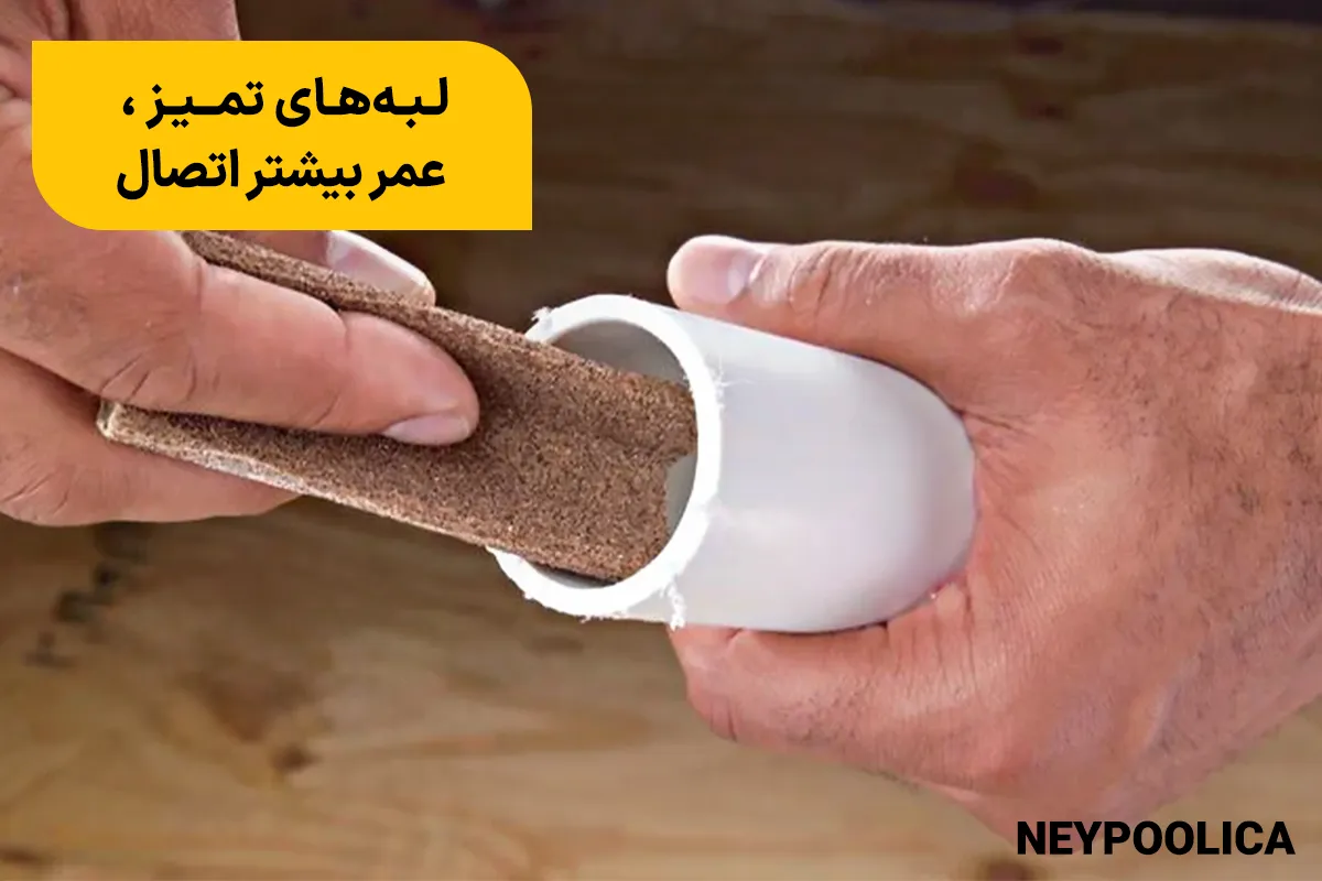 لوله ها را باید پس از برش کاملا تمیز کنید. بارها دیده شده پس از برش لوله ها بدون هیچ تمیز کاری چسبکاری شده اند. اینکار قطعا باعث ضعف در اتصال و نشتی یا کاهش طول عمر چسب کاری اتصالات خواهد شد. بنابراین حتما مراحل زیر را انجام دهید.