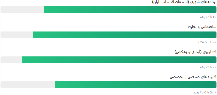 - برنامههای شهری: تامین آب، فاضلاب، مدیریت آب باران — رشد ۶–۸٪ پیشبینی شده است.